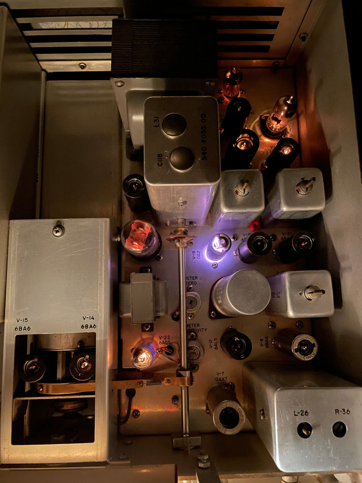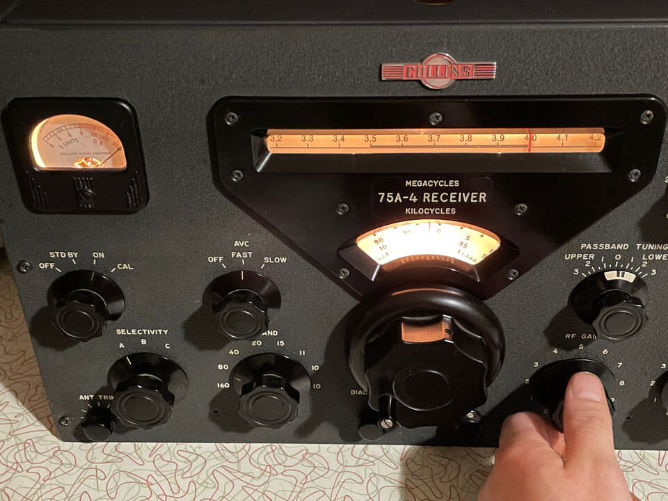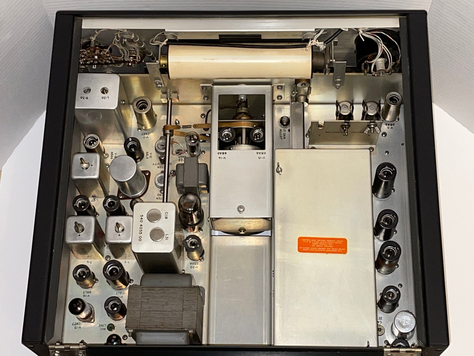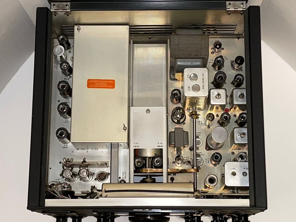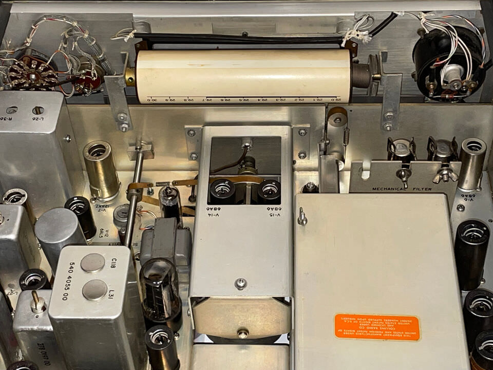 Please see all pictures as this vintage Collins ham radio receiver presents itself with fantastic appeal and class. Item is free from any loose particles inside/outside it’s original chassis. Item also appears to be free from any non original drilled holes, major denting, etc. It is evident that the original, one time previous owner did store and/or operate this item with care. Item was stated to be paired with a KWS-1 transmitter in an active ham radio station that centered around Collins radio equipment. This item includes it’s original chassis, which includes all factory marking(s) that are legible as shown in multiple pictures. Parts inside do appear to be original including transformers, tube sockets, etc. This item is super clean top and bottom inside as pictures three, five and twenty portray. The front panel of this receiver retains it’s original factory paint, lettering, knobs, etc. All original front panel parts are intact and functioning as shown. The meter and both dials are original, intact and free from cracking. Each dial turns smoothly and correctly both ways; and the DIAL LOCK does function just the same. The original Collins winged emblem is also intact and stationary. All knobs are matching, functioning and/or switching correctly. This receiver was also found with it’s original PHONES jack present as shown, too. Please see picture two to note the excellent condition of the back side of this item. Again, all original factory paint and verbiage is present and legible. This item includes all original back side connections and/or parts as well as it’s original factory stamped serial number; and this receiver does have it’s original line cord/plug. (small area of electrical tape on line cord) All venting is intact and free from any denting around the original cabinet. The original owner did repaint the top cover of this receiver and did a neat job. (see picture seven) The top cover does open and close correctly. Please see picture seventeen to note the cleanliness inside the original cover… and some light wear/age. The sides of this item, as suggested in pictures nine and ten, also appear to have been touched up by the original owner as well. This item was briefly tested with a quick loop antenna and some Morse code was heard. (works*) Please see pictures ten through sixteen to see this receiver powered on with front panel, tubes, etc. lit during brief testing. (works*) All tubes are included as shown, but have not been tested individually. Pictures ten and eleven demonstrate the BAND switch functioning correctly when switched, as well as both AM/CW-SSB being tuned. Picture twelve displays the STD BY and ON modes also functioning per the meter shown above. (works*) The AF GAIN and RF GAIN appear to be functioning; pictures thirteen and fourteen demonstrate the meter’s movement. (works*) As stated testing was brief, there are close up pictures of tubes being lit when this receiver is powered on. No other testing was done and only what is shown in the pictures is included in this auction. Item was found with the two filters shown in pictures eighteen and nineteen, and a third filter may have been included inside the bottom area of this chassis. Please utilize ZOOM when reviewing picture twenty for more details. Item was also found with two original manuals. One is for this receiver itself, the other likely was originally with this item when it was paired with it’s Collins KWM-1 transmitter. Both original manuals are complete, and in good overall condition with some wear/age… and included as shown. With mentioning again the KWM-1 transmitter this receiver was paired with, please note this receiver was found without it’s bottom cover. The previous owner, who is the original owner of both pieces, did not recall where the bottom cover went to after some electronic updating was done over the years; therefore this 75A-4 is being sold just as it was found. Although this Collins receiver is not NOS/mint in condition, it definitely has potential to be an awesome addition to your period Collins radio station and/or collection. Whether leaving this item as is, or giving it a few minor finishing touches… this is surely one clean Collins receiver inside and out.